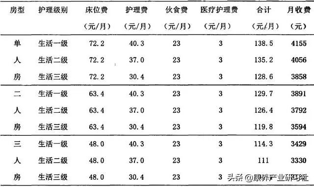 养老机构的收费问题也是老人考虑入住的重要因素。蝈族老年养护院实现了“医养结合”养老服务,在收费方面也是有所增加,与普通的养老院相比,收费还是相对较高的。蝈族老年养护院对入住缴费情况做了明确的划分,具体如下表所示:
