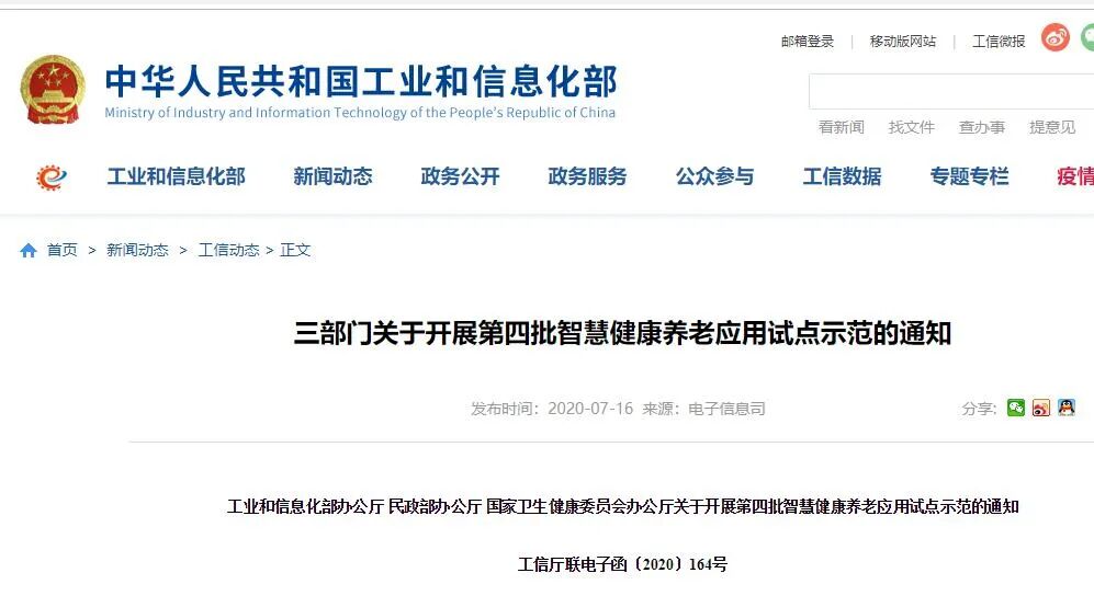 三部门联合发布丨第四批智慧健康养老应用试点示范工作今日启动!